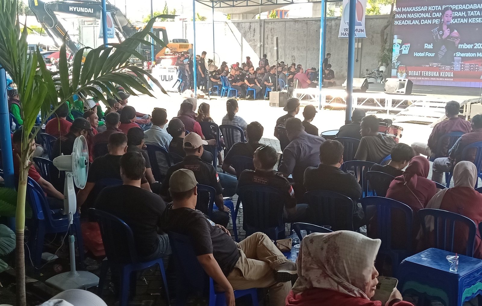 Para simpatisan Paslon nomor urut 1 ini memadati posko induk Mulia di Jalan Andi Pangeran Petarani Makassar, menggelar nonton bareng debat publik kandidat walikota dan wakil walikota Makassar. Rabu 13 November 2024.